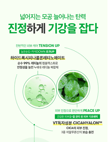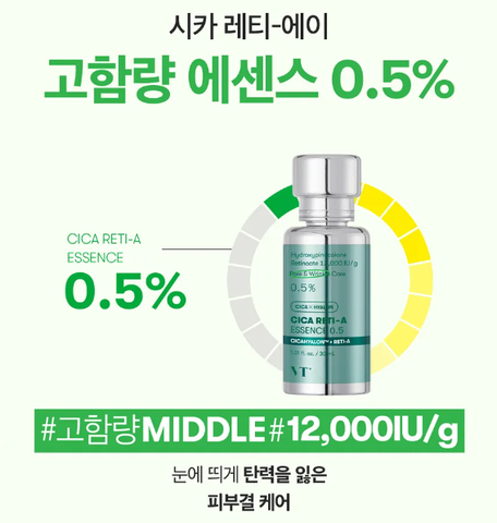 ⦁    An essence with 0.5% Cica Reti-A that is good for pore and wrinkle care.