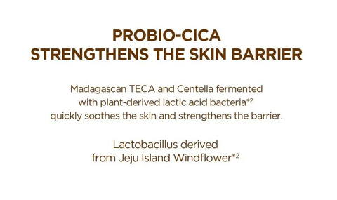 Fermented Centella is a key ingredient of the probio-cica line, and it boosts the skin microbiome with healthy bacteria to rebuild a strong skin barrier while hydrating and soothing the skin.