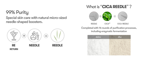 Cica Reedle, crafted with natural silica made from hydrolysed sea sponge, gently invigorates the skin, facilitating the absorption of subsequent skincare products' active ingredients. A tingling sensation may occur as the reedles work to enhance absorption of the formula into the deeper layers of your skin.