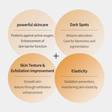Antioxidants: Ascorbic Acid, 3-O-Ethyl Ascorbic Acid, Ferulic Acid, Ectoin, Oryza Sativa (Rice) Bran Oil, Tocopherol
